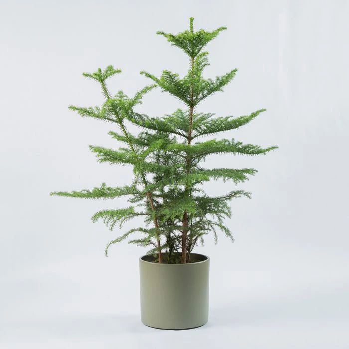 De Araucaria heterophylla is een prachtige kamerplant, ook wel bekend als de kamerden. Deze conifeerachtige kamerplant is oorspronkelijk afkomstig van de Norfolk Island, een eiland in de Stille Oceaan. Het is een populaire keuze als kerstboom in pot vanwege zijn aantrekkelijke, symmetrische uiterlijk en compacte groei.