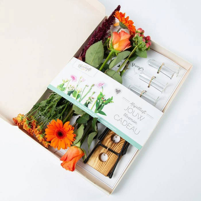 Is er een jarige in het midden of ken je iemand die van oranje bloemen houdt en deze graag zelf schikt? Bestel dan dé BloomTable® 'Copacabana' van BloomGift. Een origineel brievenbus cadeau met verse oranje bloemen en een houten tafeltje die zelf in elkaar kan zetten. Bij deze BloomTable® 'Copacabana' zitten naast de prachtige oranje bloemen ook willekeurig 3 vaasjes gestoken kunnen worden. Samen met één van onze leuke wenskaarten is dit echt een origineel cadeau om door de brievenbus te laten bezorgen. Wie ga jij deze gele BloomTable® cadeau doen?