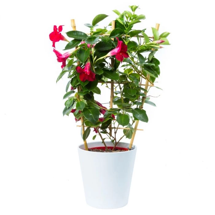 Voor de Mandevilla heb je geen groene vingers nodig. Het is een plant die niet onderhoud gevoelig is. Toch geven wij je nog wel graag enkele verzorging tips mee, hoe je het beste deze rode Mandevilla kan verzorgen: