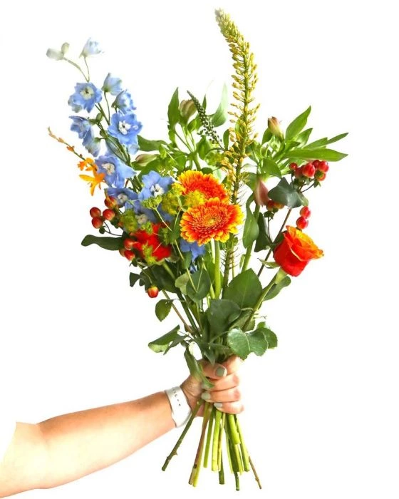 De plukboeketten worden samengesteld uit seizoenbloemen. Het kan zijn dat door overloop van het seizoen, de beschikbaarheid niet meer aanwezig is. Hierdoor kunnen de bloemen in het plukboeket afwijken van de foto.
