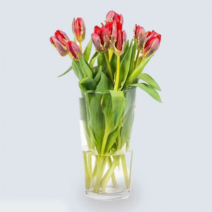 Heb je nog geen vaas voor je bos rode parkiet tulpen? Geen probleem. Bij BloomGift kun je de rode parkiet tulpen meteen met een vaas bestellen. Naast een glazen vaas heb je ook de keuze uit een hippe kraftvaas. Dit is een speciale kartonnen vaas, die bovendien ook nog eens milieuvriendelijke is.